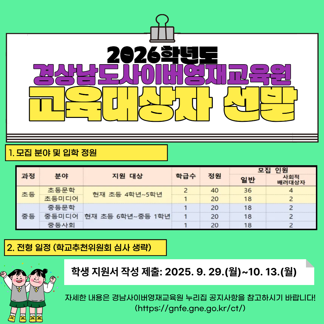 2026학년도 경상남도사이버영재교육원 영재교육대상자 선발 계획